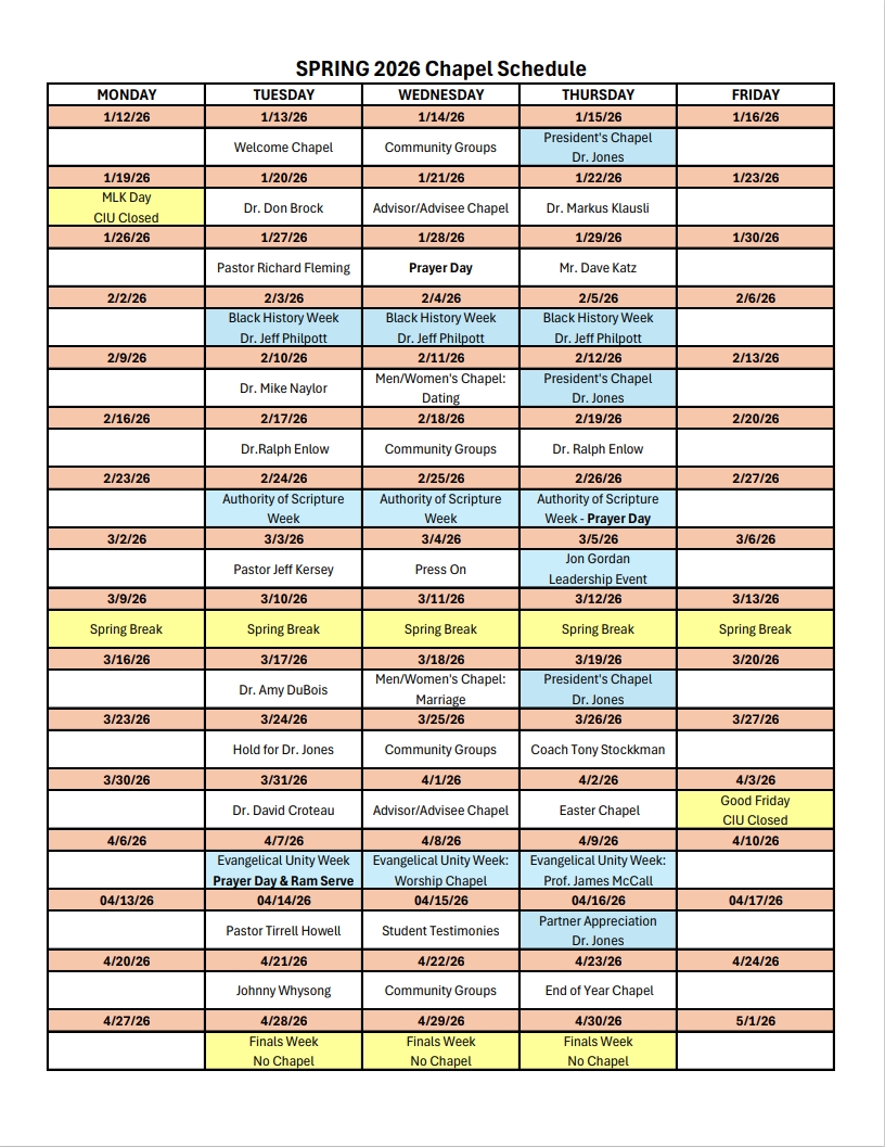 Locations for Advisor/Advisee Chapels: January 21 and April 1